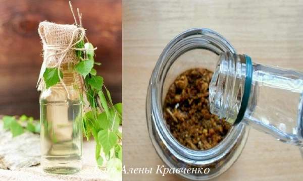- 20 мл березовой водки заливают 0,5 л горячей воды и оставляют на 20 минут.