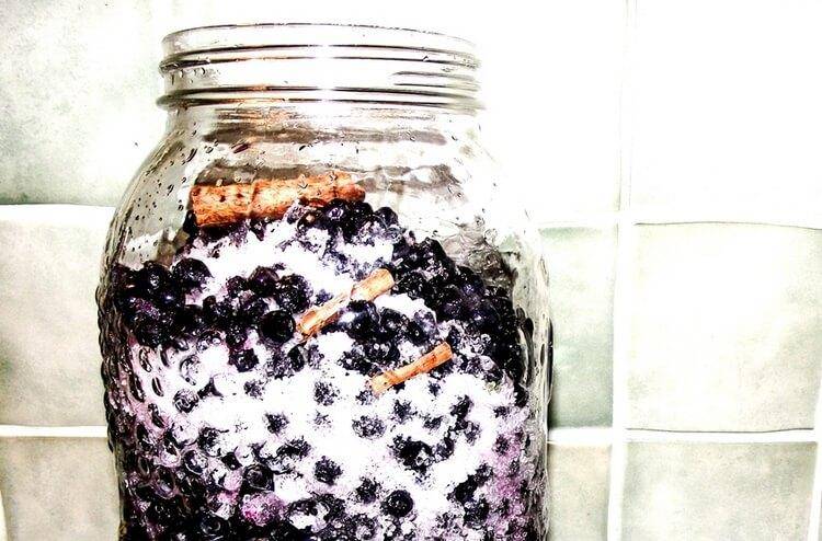 - Черничное пюре переложите в банку, добавьте гвоздику, измельченную цедру лимона и залейте всю эту смесь водкой.