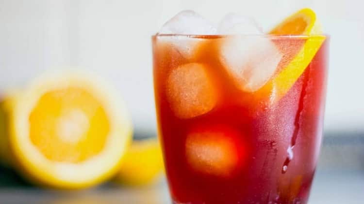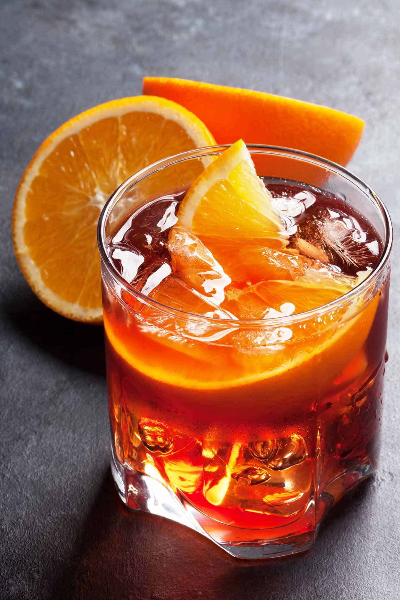 Коктейль Negroni sbagliato. Разновидность Негрони, где вместо джина добавляется шампанское, либо игристое вино. Украшается напиток все той же долькой апельсина