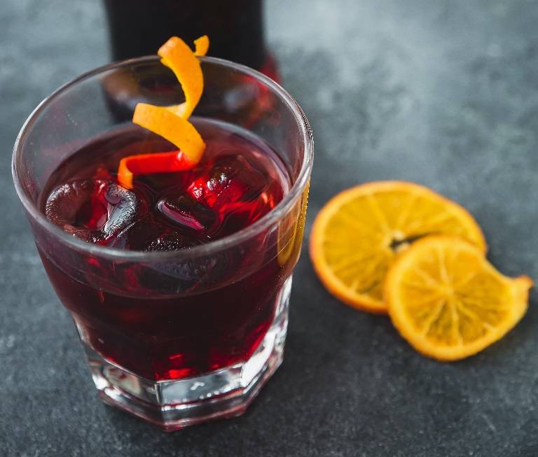 Классический рецепт коктейля Негрони состоит из сочетания трех алкогольных напитков, кусочка апельсина и льда. Рассмотрим все ингредиенты подробнее: