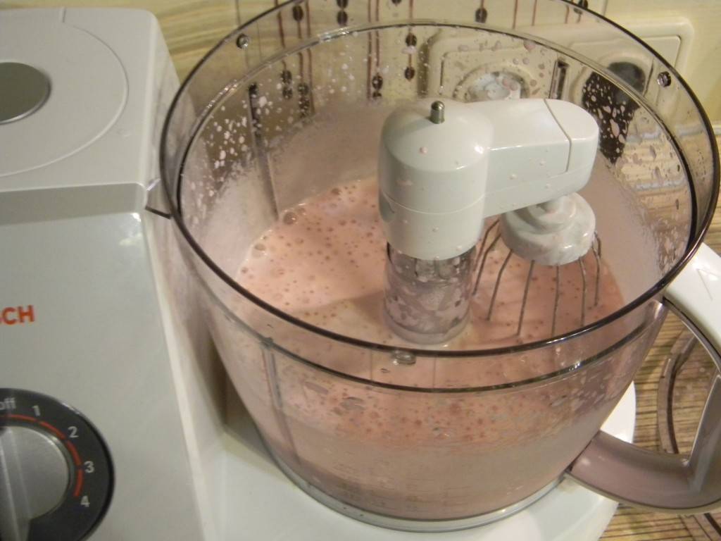 - Перемешиваем продукты блендером, используя самые высокие скорости.