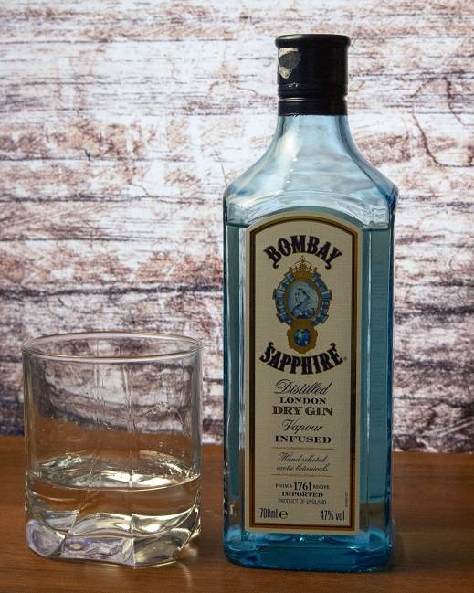 Разнообразие оттенков вкуса достигается благодаря десятку ингредиентов. Bombay Sapphire содержит корень фиалки, лакрицы, кубебу и кору кассии. Такое сочетание придает напитку сладковатый мягкий вкус. Употребляется как в составе коктейлей, так и в чистом виде. Эту марку джина легко узнать по бутылке лазурного цвета, имитирующую сапфир.
