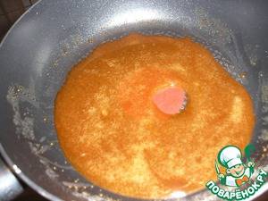На разогретую сковороду насыпаем сахарную пудру и карамелизуем на маленьком огне. Как только сахарная пудра «растопится» (на это уйдет примерно 3-5 минут),