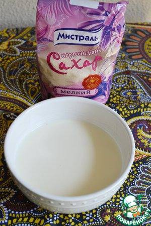 В сливки добавить 2 ст. л. сахара, раемшать.