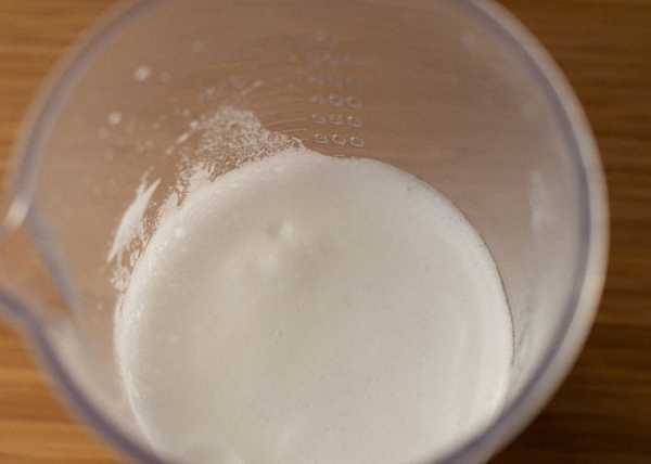 Подготовьте сахарный сироп и яичный белок. Влейте в блендер.