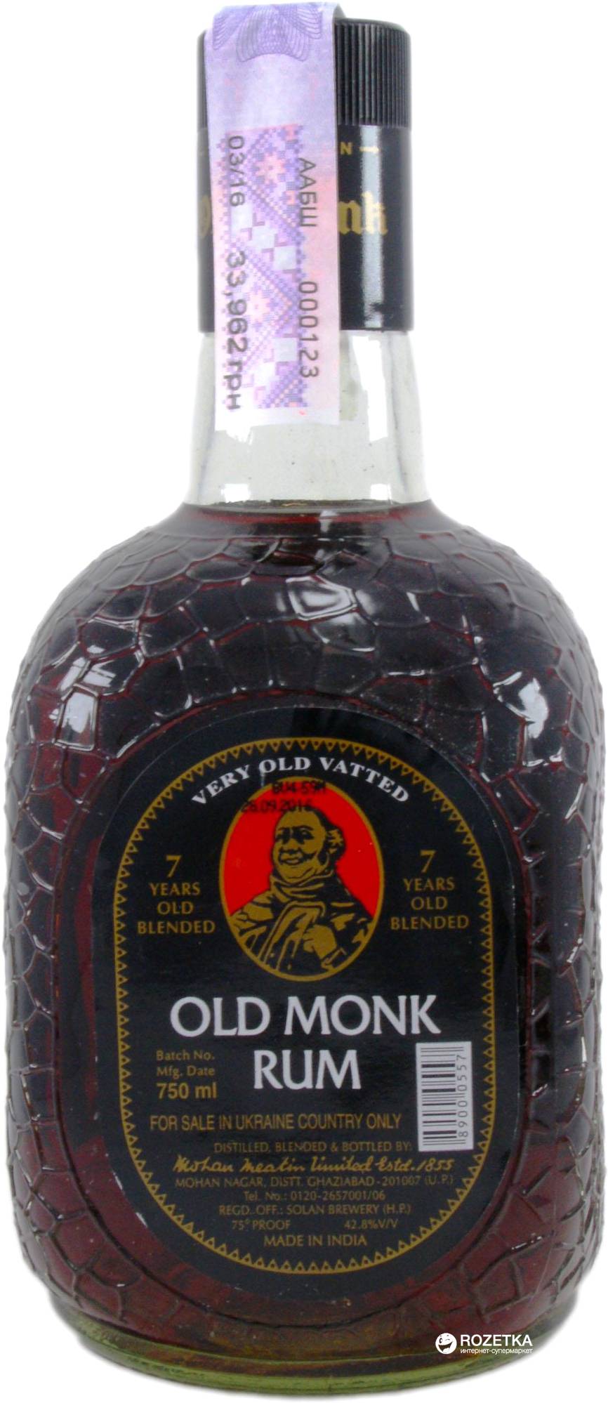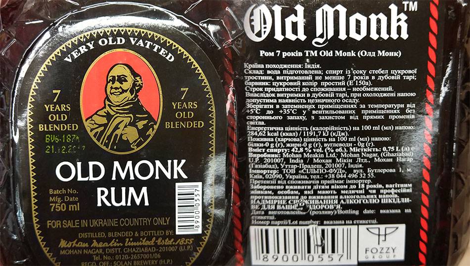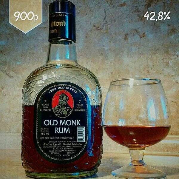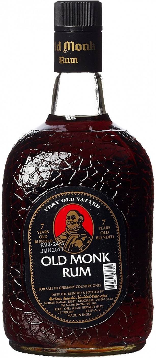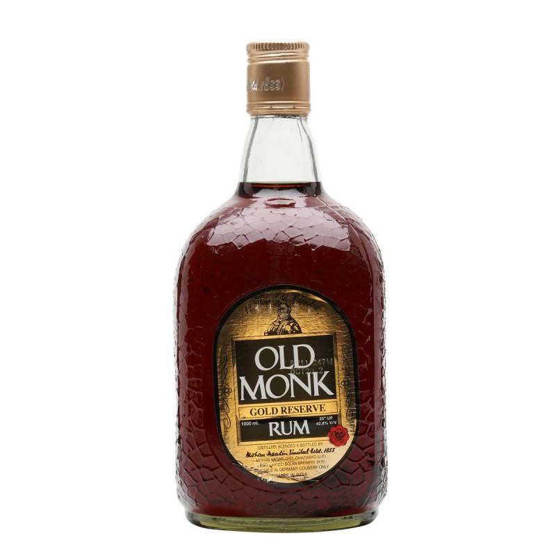 - Old Monk XXX Rum – темный ром семилетней выдержки. Этот ром сделан по всем правилам жанра. Однако напиток менее всего похож на то, что в Европе принято считать ромом. В нем нет вкуса патоки (мелассы) и почти не слышен запах карамели. Алкоголь продают в бутылках в виде монаха. Поэтому его условно прозвали подарочным вариантом.
