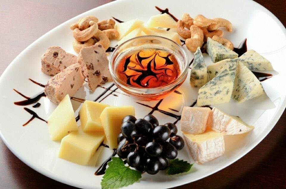 • сырно-мясная тарелка, в ее составе – куриный балык, простые сыры;