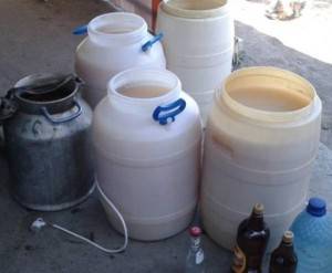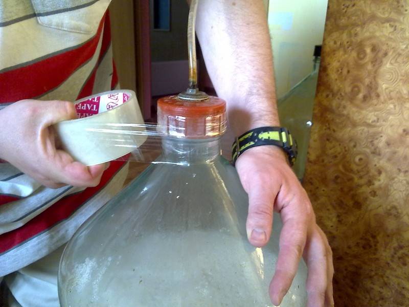 - Полученную смесь необходимо перемешать, а на емкость установить гидрозатвор.