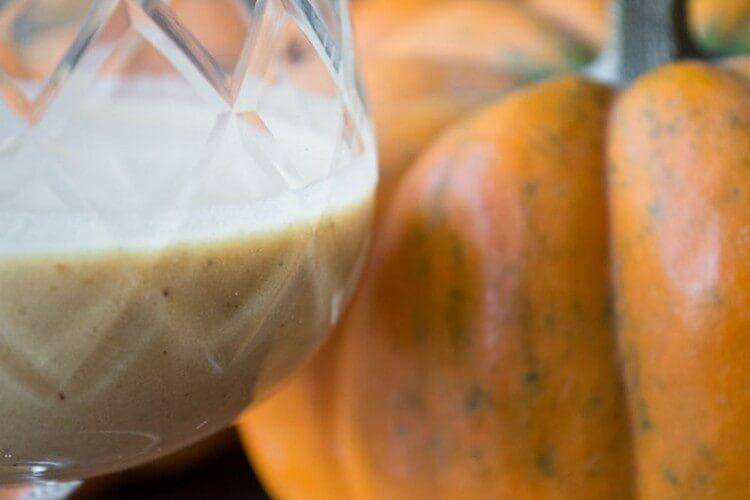 Половинку тыквы поместить на противень и отправить в разогретую до 190оС и запекать примерно 45 минут. В конце запекания тыкву можно порезать на брусочки и подрумянить при более высокой температуре до образования корочки (поможет при фильтровании). Запечённую тыкву в любом случае порезать на кусочки и убрать твёрдую кожицу, после чего переложить в банку подходящего объема, добавить пряности и залить литром самогона. Настаивать в тёмном прохладном месте 5 дней, процедить через марлю, при необходимости профильтровать через вату или кофейные фильтры. Взять 400 мл полученного настоя, добавить сгущёнку, сливки и перемолотый в кофемолке фундук, после чего смешать всё погружным блендером. Дать ликёру отдохнуть в холодильнике пару дней и приступать к дегустации (или готовить коктейли, рецепты которых описаны в статье с другими тыквенно-сливочными ликёрами).