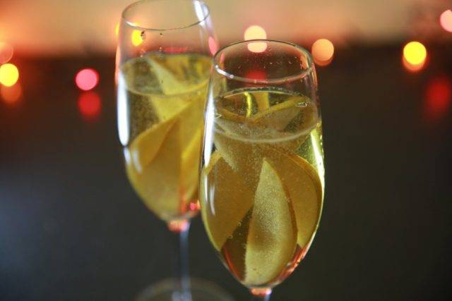 - В самом конце вам предстоит добавить 120 мл игристого вина, после чего один раз при помощи чайной ложки поднять напиток снизу вверх. Ваше новогоднее шампанское готово, и его можно с удовольствием пить.