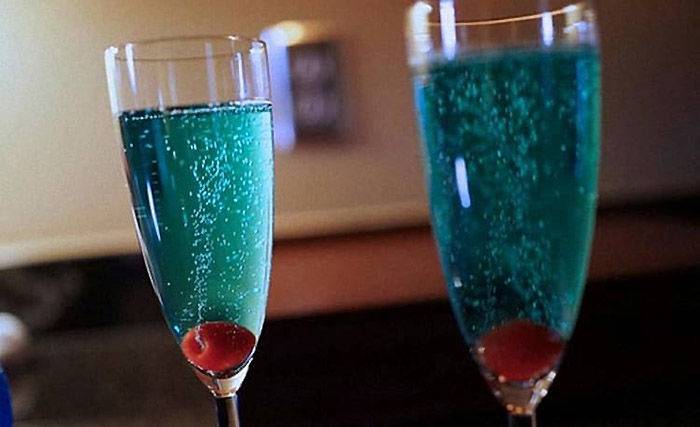 Коктейль с шампанским и блю кюрасао «Голубое шампанское»