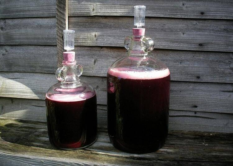 Когда затвор перестал булькать или перчатка опустилась – сусло незамедлительно сливаем с мезги, жмых хорошо отжимаем. Добавляем еще 200 граммов сахара, заливаем в бутыль или банку на 4/5 объема и отставляем в прохладное место для тихого брожения. Через неделю вино нужно декантировать – снять с осадка при помощи трубочки. Если осадок будет выпадать в дальнейшем – процедуру следует повторять раз в месяц или даже чаще. Тихое брожение будет длиться 1-2 месяца, до полного осветления жидкости.