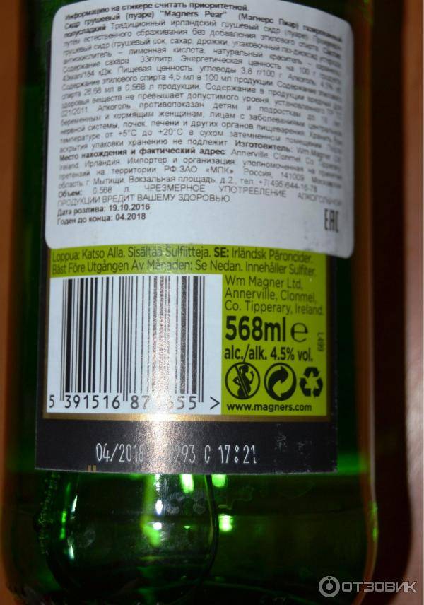 Грушевый сидр торговой марки – соломенно-золотистого оттенка. Во вкусе ярко выражен фрукт, давший сок для напитка, улавливаются также травянистые терпкие минеральные нотки. В аромате сидра Магнерс из груши присутствуют луговой, цитрусовые, цветочные акценты. Такой полноценный благородный букет достигается благодаря изготовлению из фруктов отменного качества – сочных и спелых плодов, специально отбираемых для переработки.