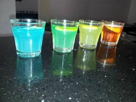 Из разных видов соков тоже можно приготавливать шоты, переслаивая их между собой дополнительно при помощи тонких кружочков лимона или апельсина.