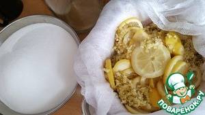 - Ввести липовый мед ? 30 г. Размешать.