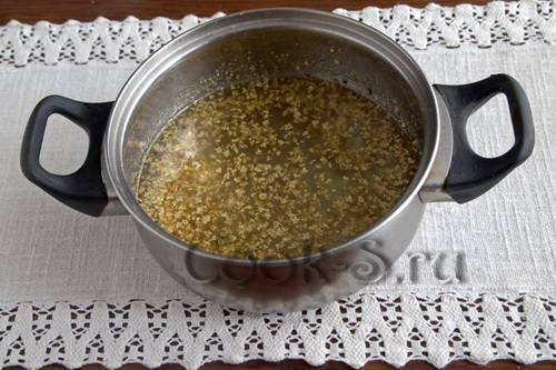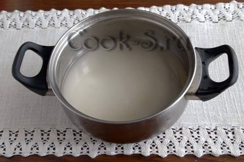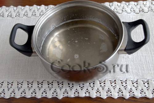 Перелить в кастрюлю содержимое банки, процедив через марлю (марлю хорошо отжать).