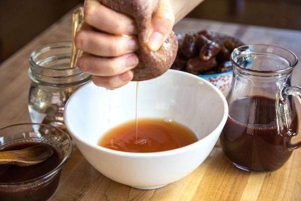 Перед готовкой финикового сиропа сухофрукты промывают теплой водой и удаляют из них косточку. В нижеописанных рецептах количество фиников берется без учета веса косточек.