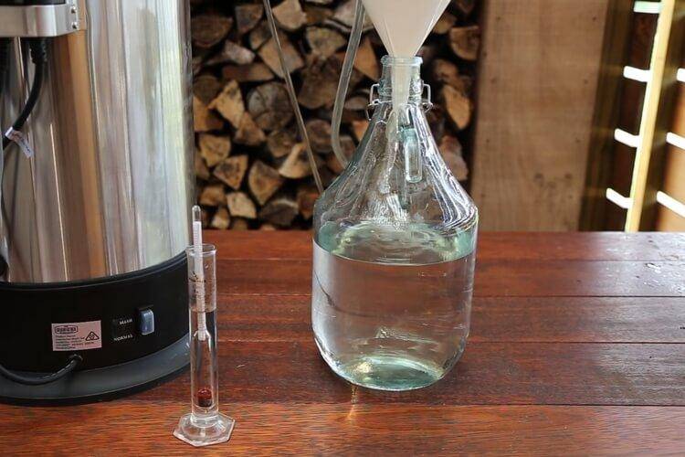 - Полученную смесь заливаем в бродильный сосуд, после чего вносим дрожжевую смесь.