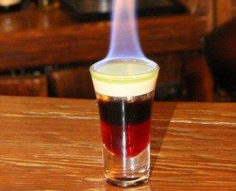 Верхний слой – текила. Перед тем, как выпить коктейль, его поджигают, и пьют «Безымянный» залпом.