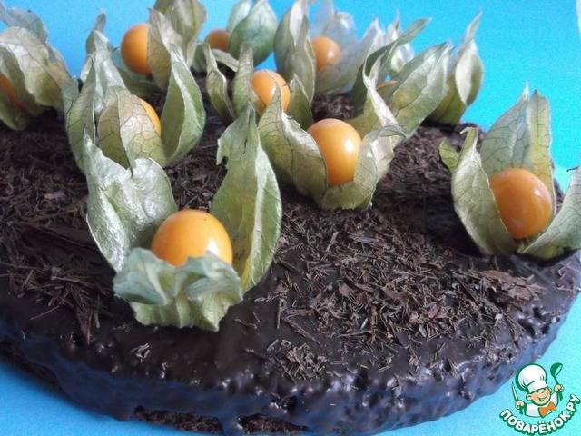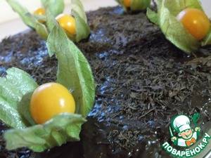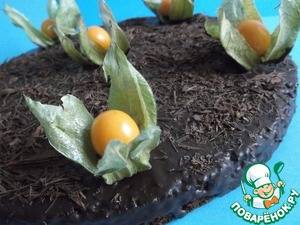 Пока шоколад не схватился, «высаживаем» в произвольном порядке цветы физалиса