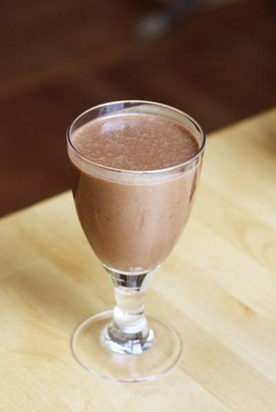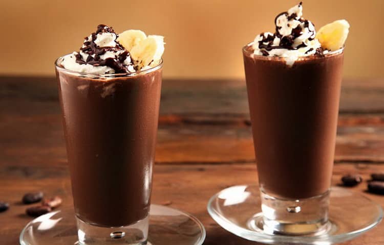 Характерные нотки придаст растопленная плитка или обычное порошковое какао. Упрощенный вариант – использовать шоколадное мороженое (тогда достаточно всего лишь взбить его с молоком).