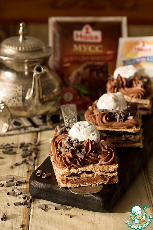 - Она помещается в бокал, сверху укладываются взбитые белки и на них – тертый шоколад.