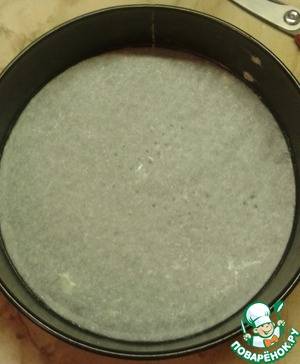Выкладываем наше тесто в форму, застеленную бумагой для выпечки (диаметр формы 26 см). Аккуратно разравниваем.