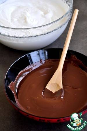 Соединить остывший шоколад со взбитыми сливками, добавить ликер.