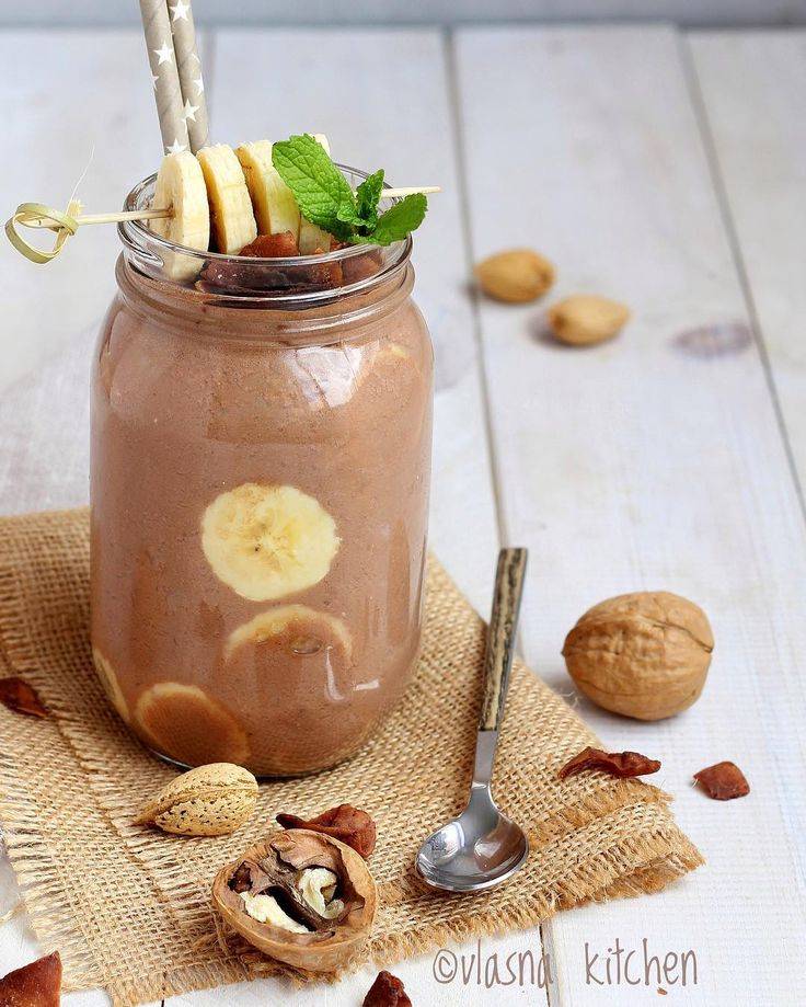 Любители бананов смогут дополнить шоколадный коктейль этим фруктом. Однако не все бананы подойдут для насыщенного шоколадного десерта. Выбирать нужно лишь те плоды, которые имеют насыщенный аромат и легко отходящую кожуру. При желании количество бананов на одну порцию можно увеличить до 2 штук.