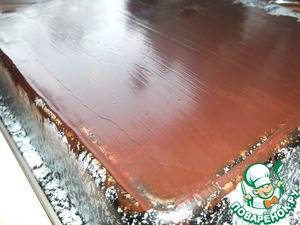 3 ст. л. жидкого шоколада тонко наносим на мраморную доску или, как у меня, на тыльную гладкую сторону небольшого противня.