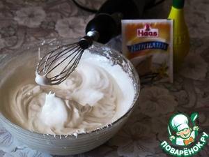 Белки взбить со щепоткой соли и ванильным сахаром до пиков