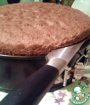 Достать бисквит с помощью пароварки, остудить, разрезать ножом с длинным лезвием на два круга одинаковой толщины. Одну часть пропитать миндальным ликером, другую отдать домашним съесть с чашкой ароматного кофе:)
