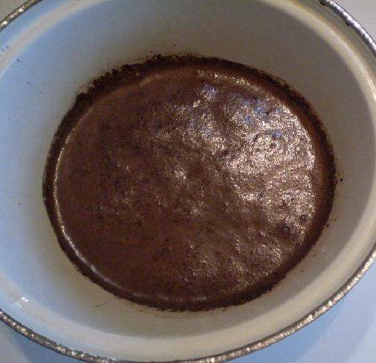 - Состав отправляется на медленный огонь и подогревается. Для исключения пригорания смесь постоянно помешивается.