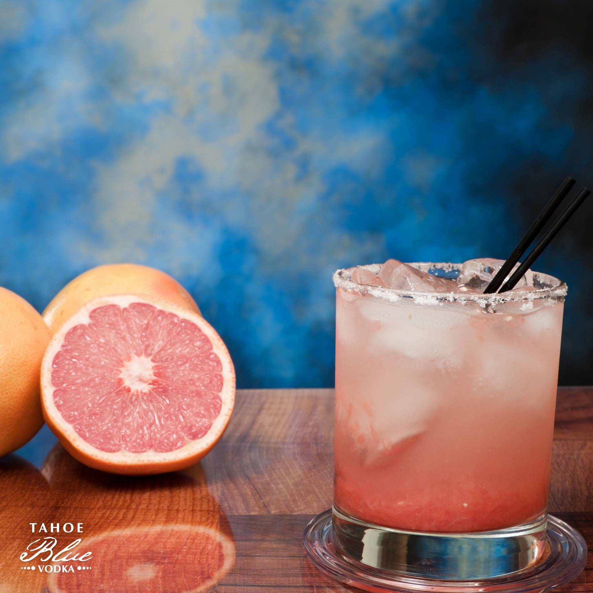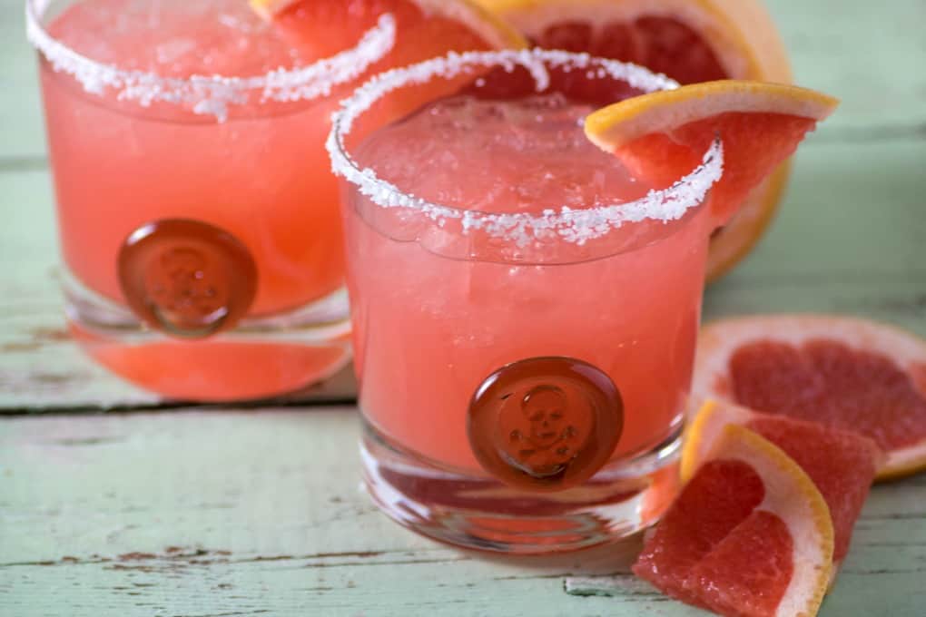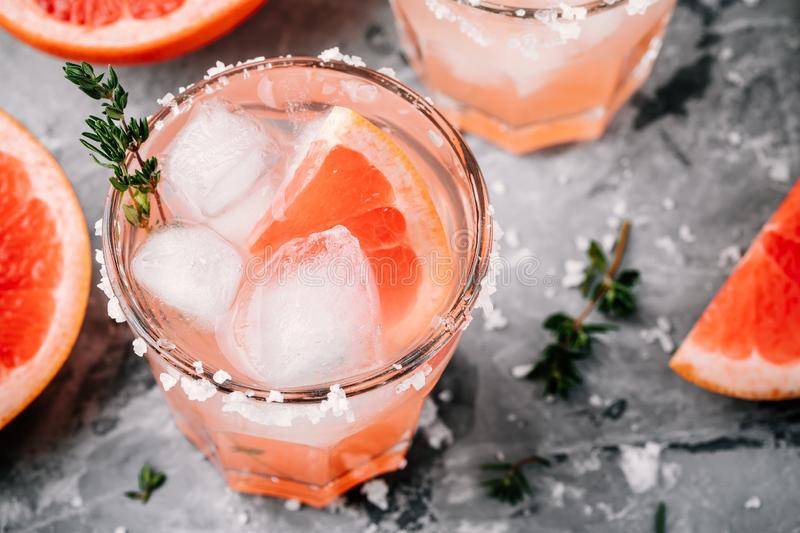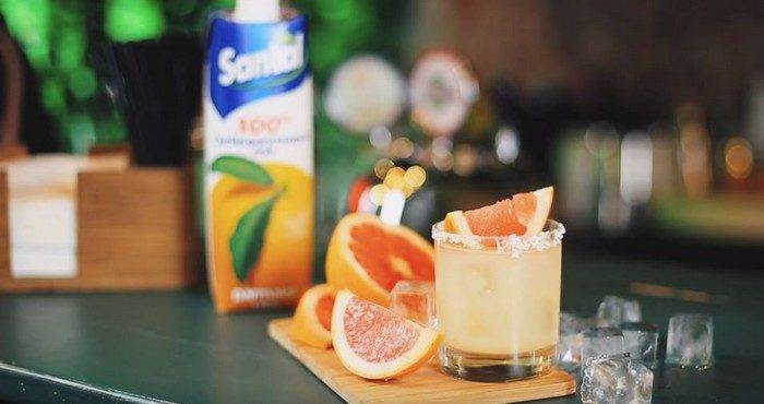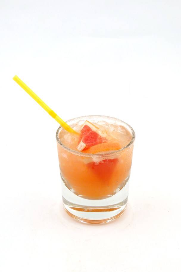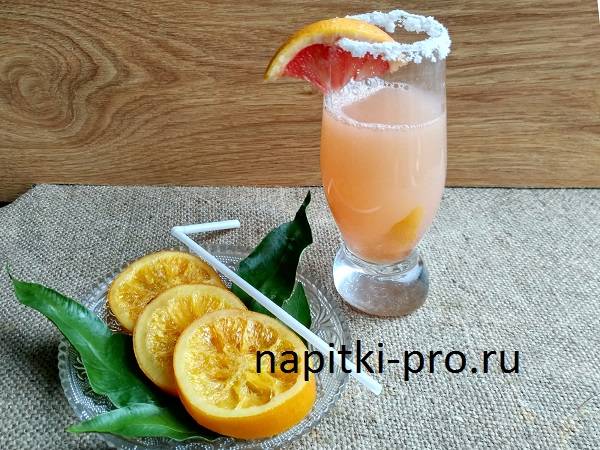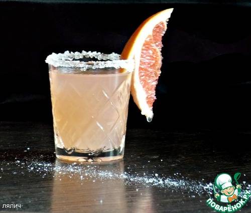- Ободок высокого стакана смазать половинкой грейпфрута.