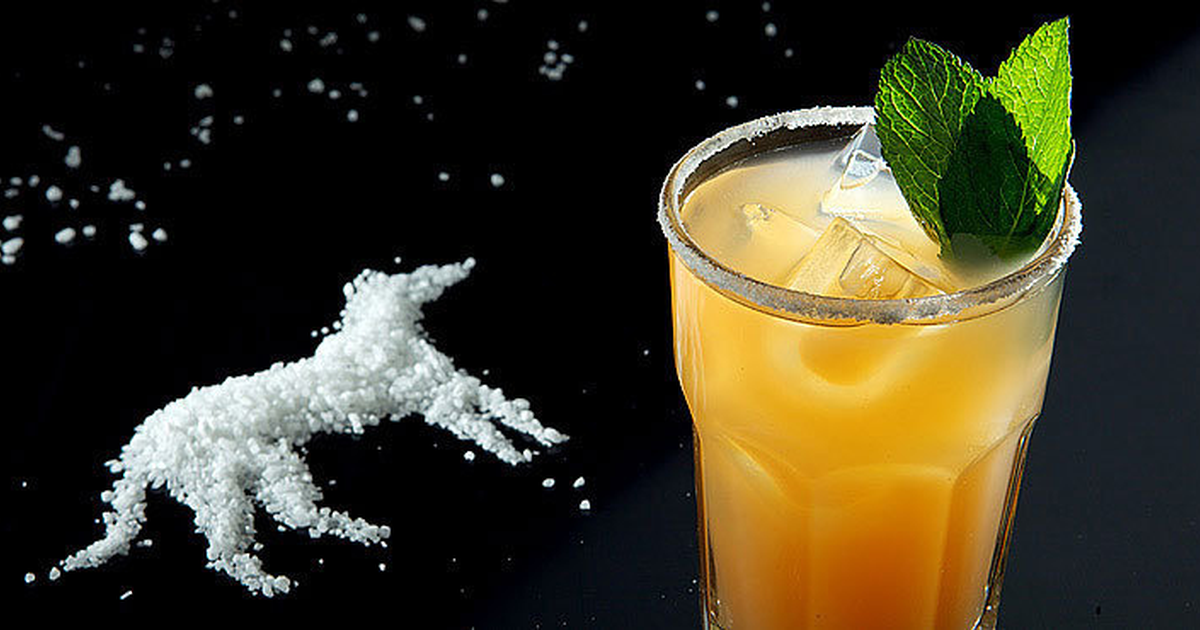 Декорировать стакан солью можно не только одним способом. Можно также глазировать стакан методом опускания ободка в сок грейпфрута. Затем уже в соль. Лучше, кстати, выбрать крупную, чтобы выглядело на уровень выше. Мелкую соль могут вовсе не заметить.