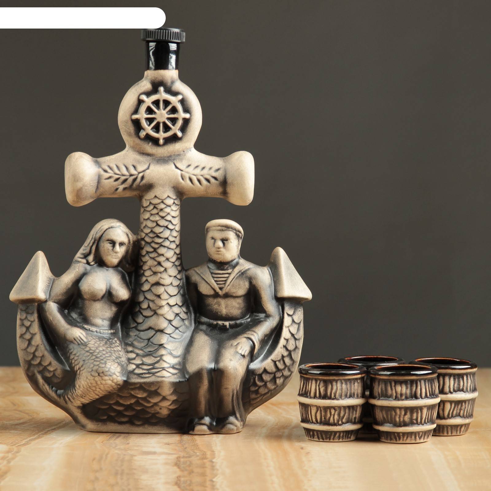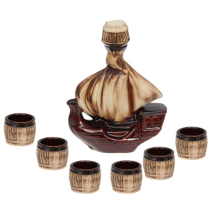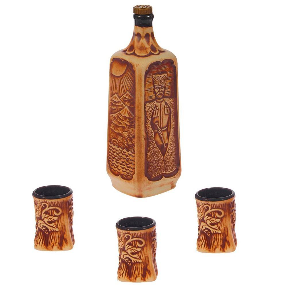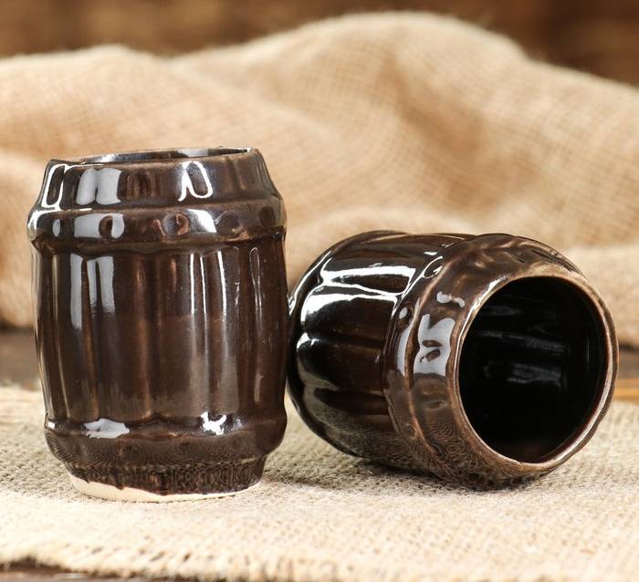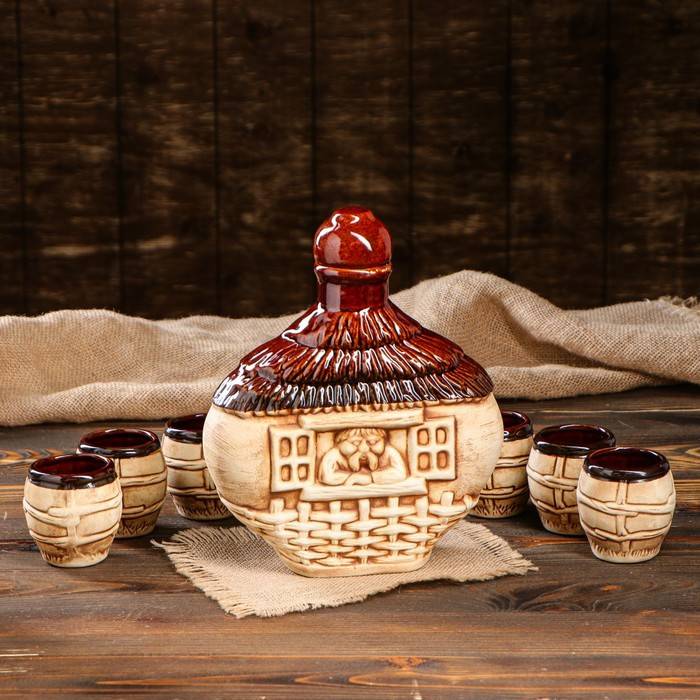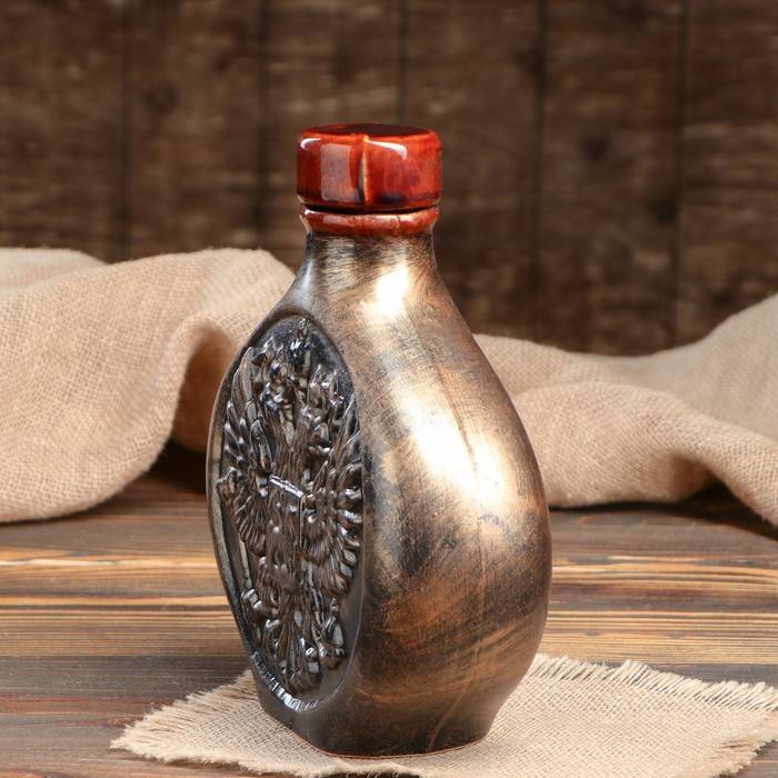 Керамика. Условно подразделяются на два подвида: обычный и декоративный. Первый – более редкий тип и используется для ежедневных бытовых целей. Их стоимость в зависимости от качества начинается от 2 долларов. Второй тип имеет не столько функциональное, сколько эстетическое назначение. Такой штоф для водки, например, выполненный в форме паровоза или фигурной композиции, украшенной рисунками из гжели, является отличным элементом декора. Цена изделий начинается от 4-5 долларов.