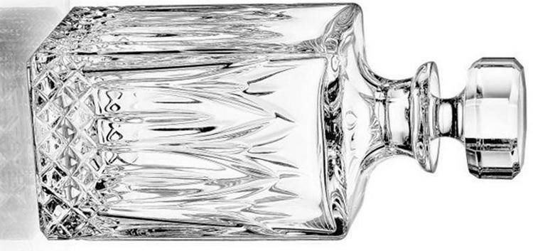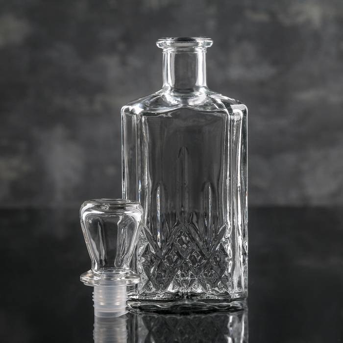 Хрусталь. Отличается великолепной эстетикой и будет уместно смотреться на праздничном столе или во время другого знакового веселья. Кроме того, хрусталь – отличное украшение домашнего бара или серванта. Чаще всего декоративная отделка состоит из искусного резного узора на поверхности штофа, хотя существуют и полностью гладкие изделия. Также в качестве дополнительного украшения может использоваться позолота или узоры из других ценных металлов и даже камней. Функциональные качества и прочность материала находятся на высоком уровне, но из-за высокой стоимости и вероятности того, что графин разобьется, использовать такое изделие для ежедневных нужд нецелесообразно. Стоимость хрустального штофа для водки начинается от 30 долларов.