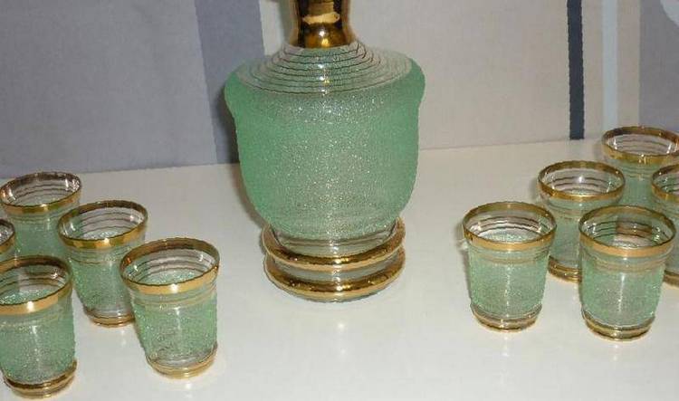 Стекло. Хороший выбор для повседневного пользования – простой и практичный. Украсит стол и сервант и послужит удобным сосудом для горячительного к трапезе. Стоимость изделия от 2 долларов.