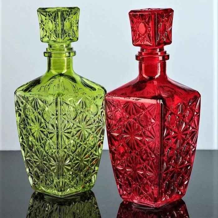 - Полуштоф. Составляет половину объема классического штофа – от 0,5 до 0,6 литра. Такой графин под водку используется, когда спиртное будут пить два-три человека.