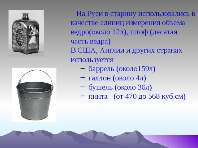 - казенное ведро – 12 литров;