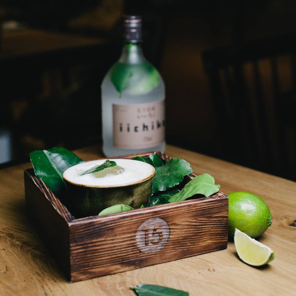 АНДРЕАС ЦАНОС, шеф-бармен 15 kitchen + bar: «Настоять 720 миллилитров шочу на 20 граммах листьях лайма в течение суток. Нагреть миндальное молоко с сахаром до полного растворения. Добавить остальные ингредиенты и варить на медленном огне 7-10 минут не доводя до кипения. Снять с огня, положить лист нори, дать остыть и отфильтровать. Взбить все ингредиенты в шейкере, и отфильтровать в пиалу с крупным льдом. Добавить спрей розовой воды».