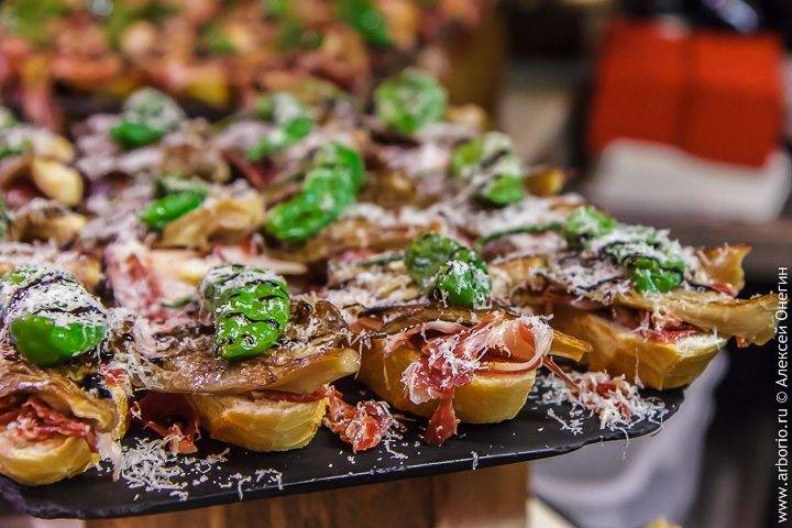 И, конечно же, пинчос! Уже не как еда, а как элемент окружающей среды. Понимаете, в городе, где в любой забегаловке кормят на порядок лучше, чем в дорогом ресторане где-нибудь в другом месте, складывается невероятная творческая атмосфера, здесь уже не могут появляться плохие рестораны. Шкала оценок перемещается с «плохо, сносно, хорошо» на «хорошо, отлично, сногсшибательно». Это примерно как сравнивать захудалый ВУЗ с лучшим университетом мира: попав в последний, даже не самый одаренный парнишка умнеет буквально на глазах.