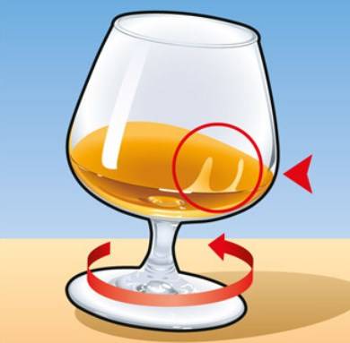 Покрутите бокал (должны быть потеки в 5-7 секунд)