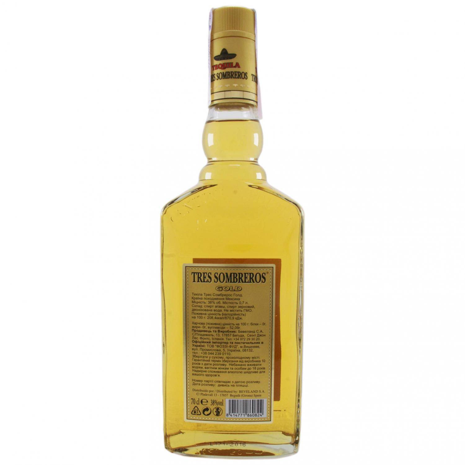 - Tres Sombreros Gold тоже ординарный сорт, который выдерживают бочках из дуба, что придает напитку дубовый привкус и светло-янтарный цвет.