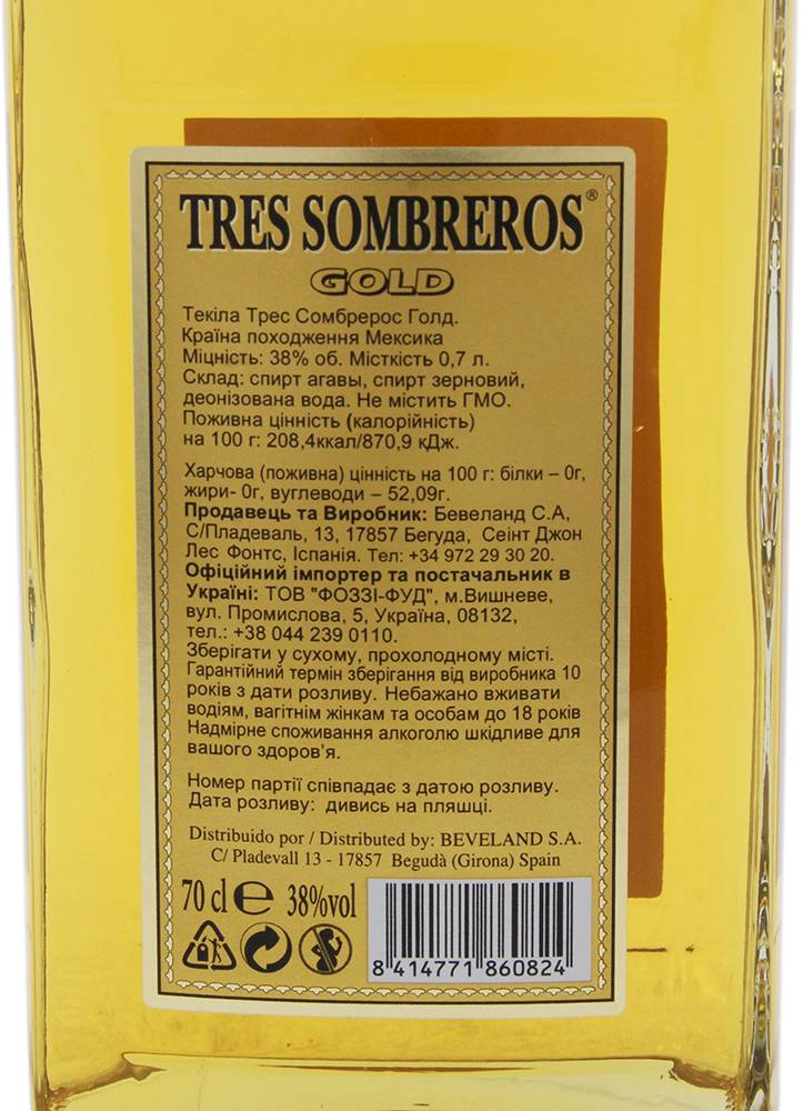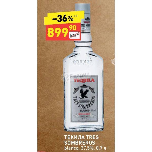 На сегодняшний день под “тремя сомбреро” выпускаются марки текилы крепостью не более 38%. Это: