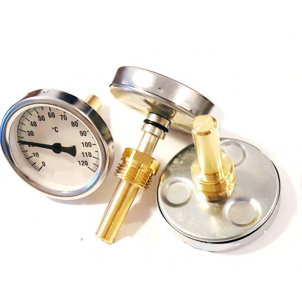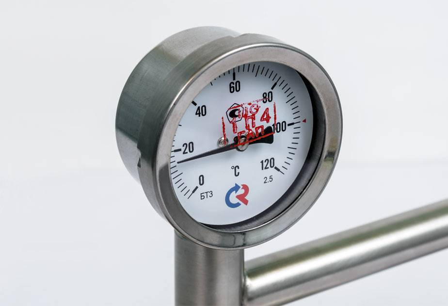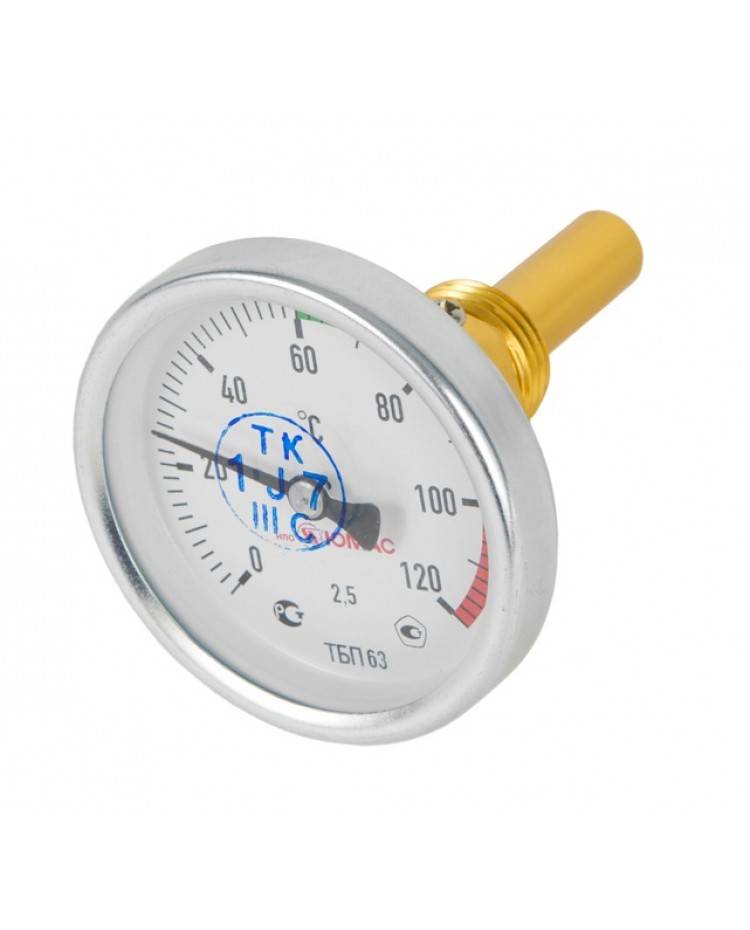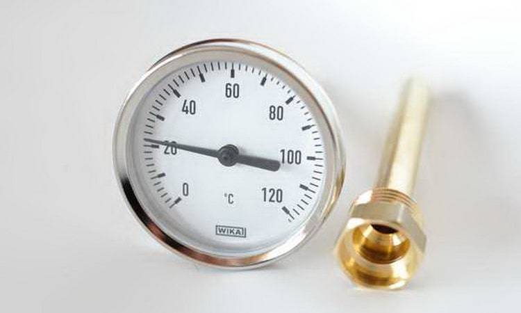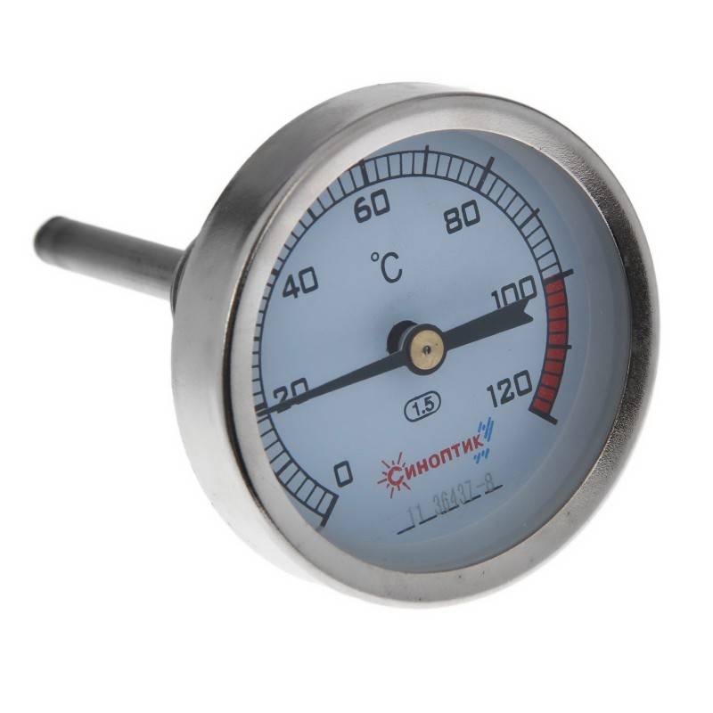 Обращать внимание нужно на шкалу, показатель максимальной температуры не должен быть меньше 120 градусов. Обычно для этого применяются биметаллический термометр, механизм которого основан на упругой деформации, возникающей между металлическим пластинами