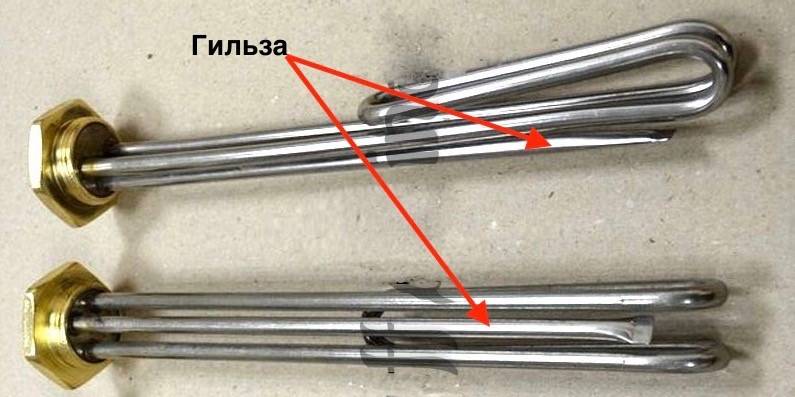 Наиболее простой и доступный вариант размещения термодатчика – в гильзе ТЭН. При установке достаточно её отогнуть на пару сантиметров вбок и вверх от нагревательных элементов.