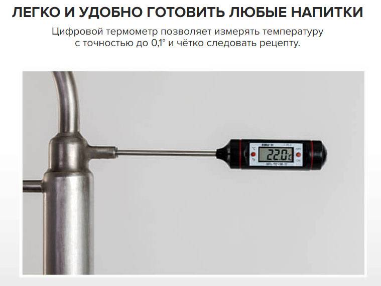 - Точное измерение температурных режимов, что только облегчает процесс выгонки спирта, а также позволяет улучшить качество дистиллята;