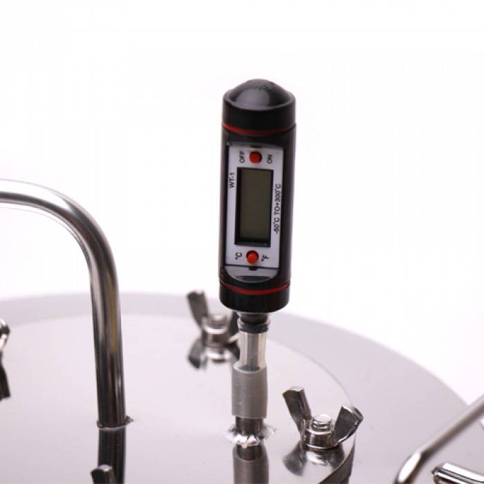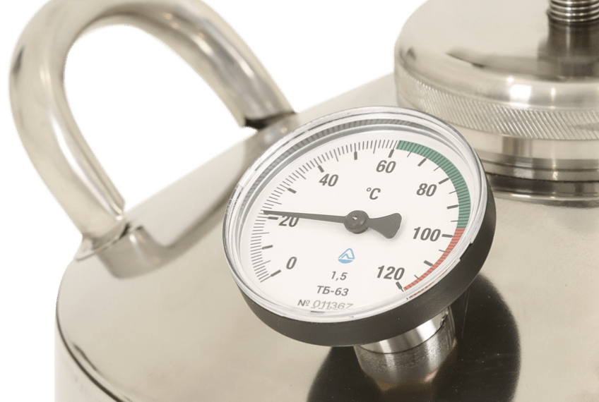 Чтобы приготовить именно тот алкоголь, который будет отвечать каждому из ваших требований и иметь высокую крепость, первое, за чем стоит следить – это температурный режим, при котором проходит перегонка спиртного. Все мы знаем, что температура кипения воды гораздо выше, чем соединений спирта. Именно на этой разнице основывается приготовление домашнего алкоголя. Внезапные скачки температурных показателей, их резкое понижение или повышение отрицательно сказываются на качестве конечного готового продукта. Предупредить вас о нежеланных изменениях температуры сможет термометр.