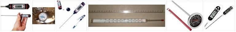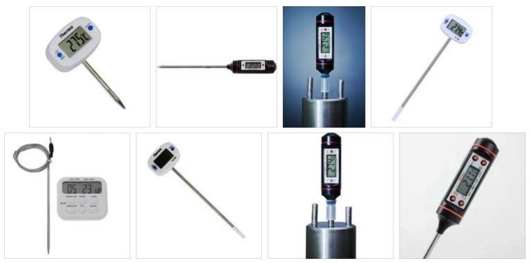 Кроме биметаллических устройств стали активно применяться и электрические термометры. Такие модели могут обладать широким диапазоном, например, от -50 до 300 градусов. Для удобства применения изделие снабжается жидкокристаллическим дисплеем, имеет длинный зонд, выполненный из нержавеющей стали. Электрический прибор и биметаллический не имеют особую разницу в цене. Они доступны для приобретения как в специализированных магазинах, интернет-ресурсах для желающих купить все необходимое для приготовления алкогольных напитков в домашних условиях.